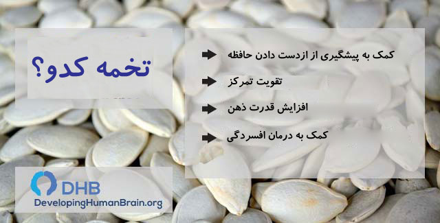 تخمه کدو دارای چندین نوع چربی است که برای سلامت مغز مهم هستند، مثل ELA و ALA. همچنین این دانه دارای روی می باشد. ما زمانی که دچار استرس می شویم روی بیشتری مصرف می کنیم. با خوردن تخمه کدو شما یک جایگزین سریع دارید و میتوانید استرس را از خود دور کنید.