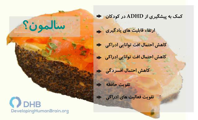 چربی سالمون صلی ترین دلیل برای مصرف این ماهی است. این ماهی سرشار از اسید چرب امگا3 سالم است و به آسانی در دسترس است. این چربی ها برای ایجاد مسیرهای عصبی جدبد بسیار مهم اند. تنها باید دقت کنید که ماهی آزاد بخورید. ماهی سالمون پرورشی در مزرعه های پرورش ماهی مقدار اندکی امگا3 دارند.