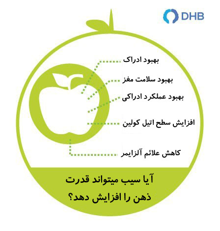 سیب مقدار زیادی استیل کولین دارد که جا به جایی و حساسیت ادراک را بالا می برد. سیب همچنین اضطراب و تنش را می کاهد. همچنین یک تحقیق نشان می دهد که دانش آموزانی که در زمان نهار یک سیب می خورند در امتحان عصر نمره آنها 1.4 افزایش داشته است.