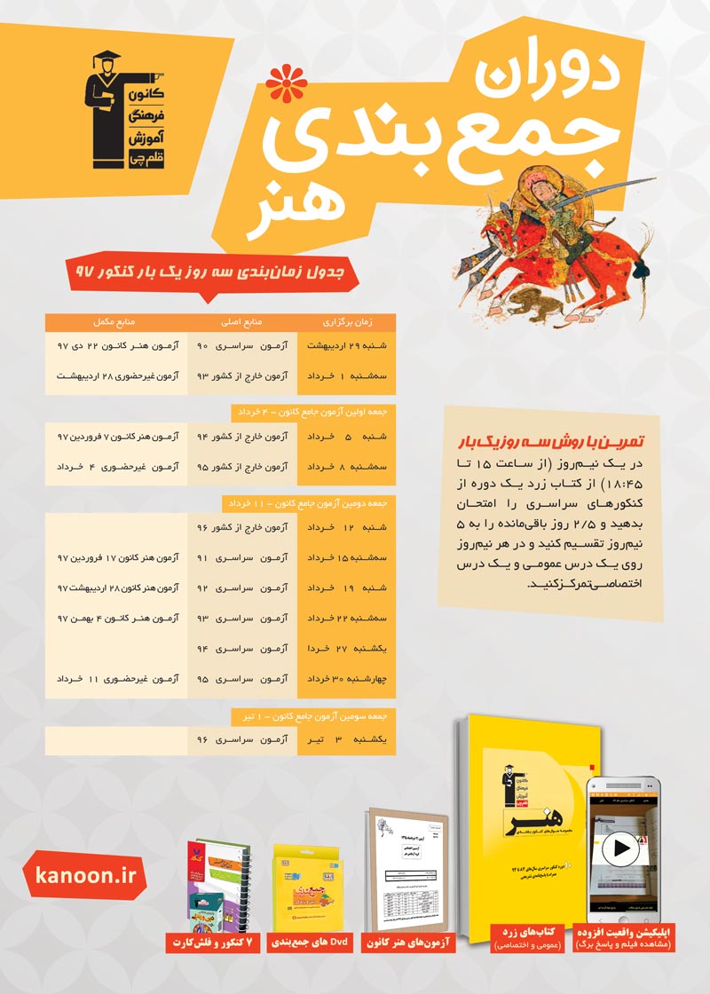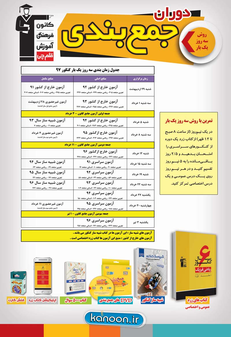 برنامه دوران جمع بندی کنکور 97 به روش سه روز یک بار را در ادامه ببینید .