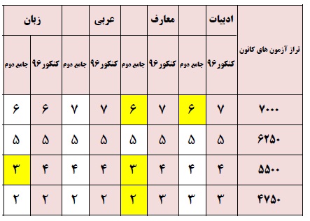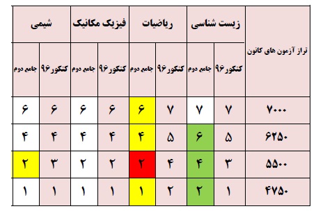 بقیه درسها با یک اختلاف در یک بازه ترازی تقریباً هم سطح کنکور بوده اند.