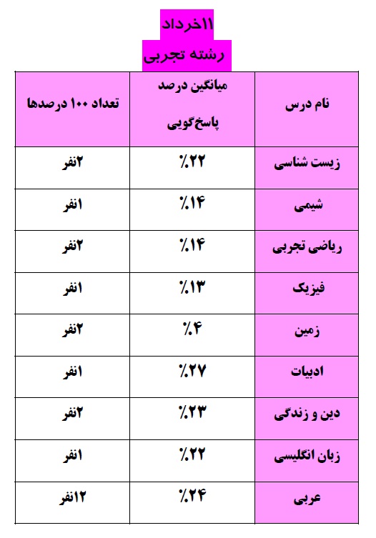 در آزمون امروز بر اساس آمارهای بعد از برگزاری؛