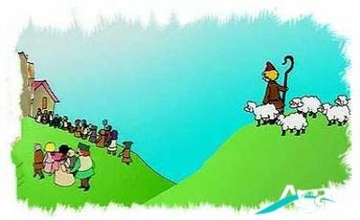 روزی روزگاری پسرك چوپانی در ده ای زندگی می كرد. او هر روز صبح گوسفندان مردم دهات را از ده به تپه های سبز و خرم نزدیك ده می برد تا گوسفندها علف های تازه بخورند.او تقریبا تمام روز را تنها بود.