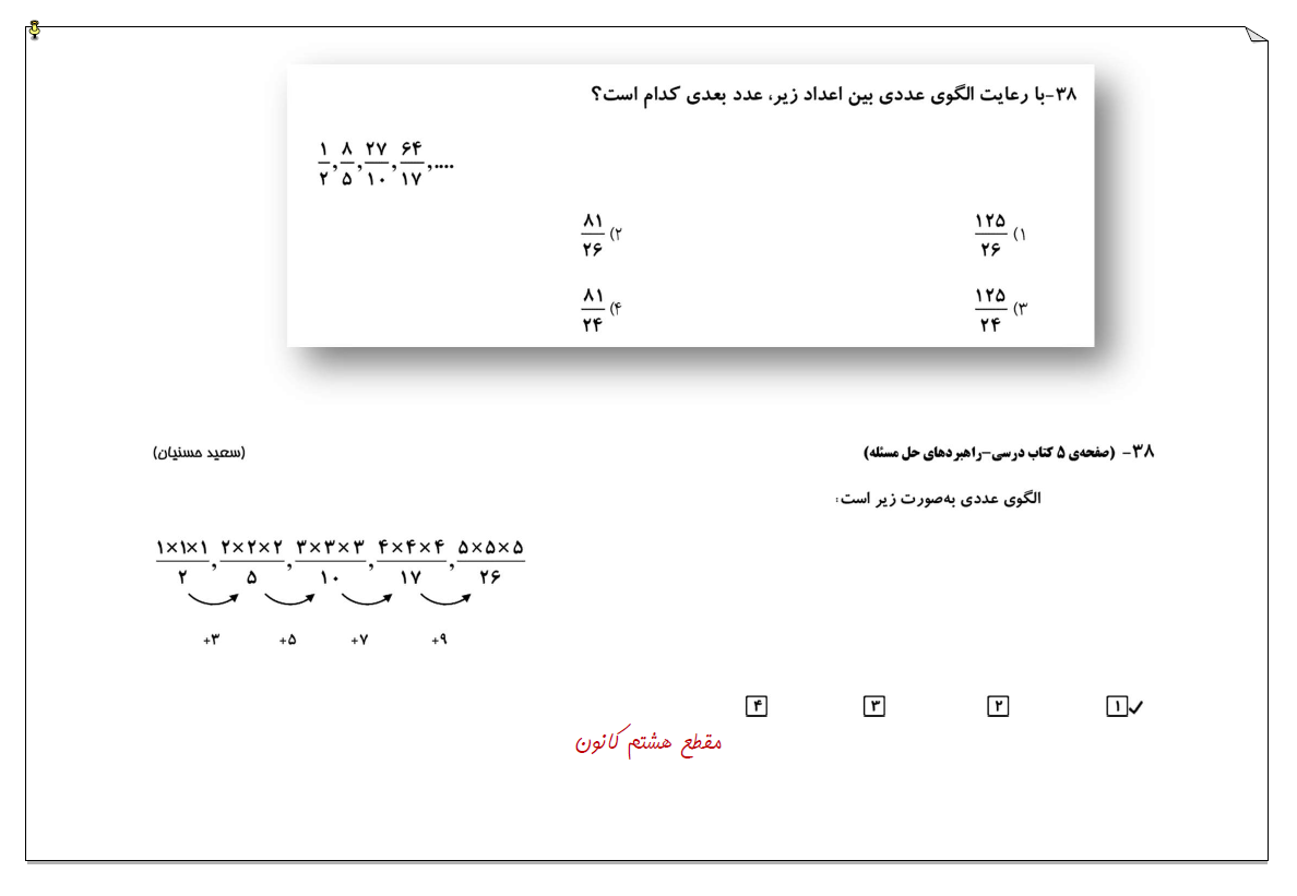 نمونه تست 2 آمادگی آزمون 22 تیر درس ریاضی-مقطع هشتم