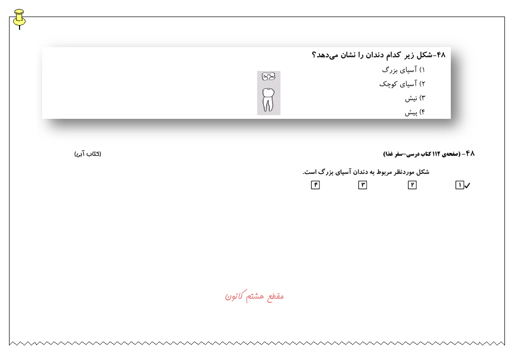 نمونه تست آمادگی آزمون 22 تیر درس علوم-مقطع هشتم