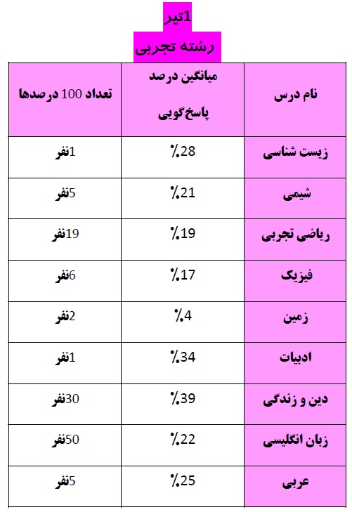 کنکوریهای عزیز رشته تجربی