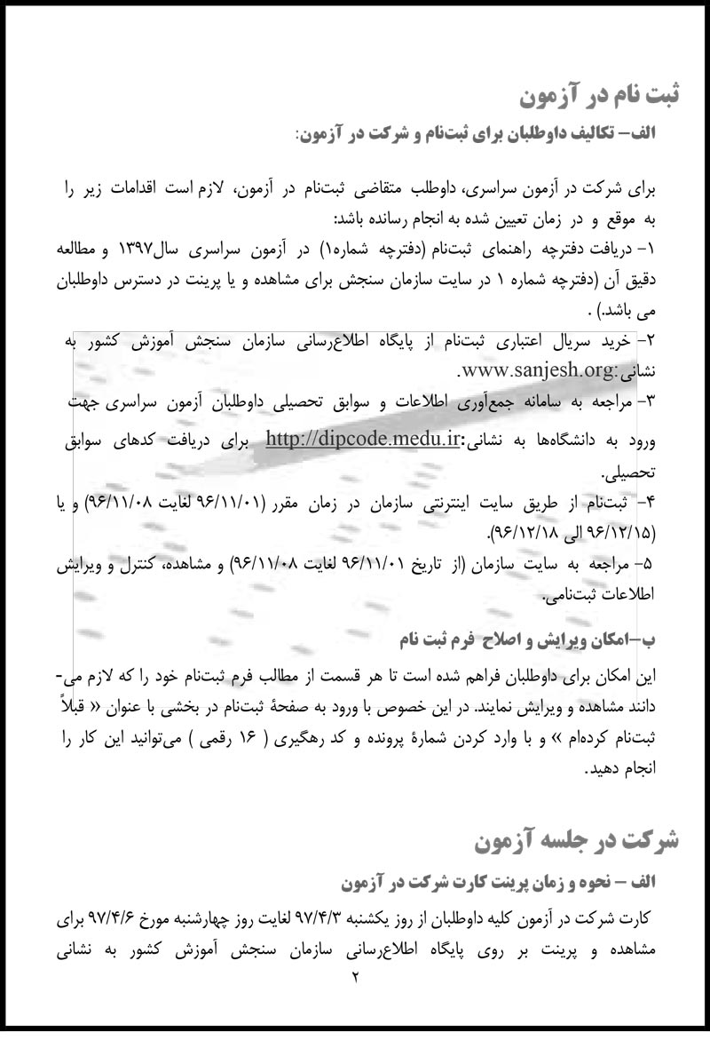 راهنمای شرکت در کنکور سراسری 97 توسط سایت سازمان سنجش منتشر شده است . در ادامه این نکات را مطالعه کنید.