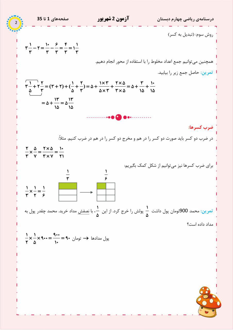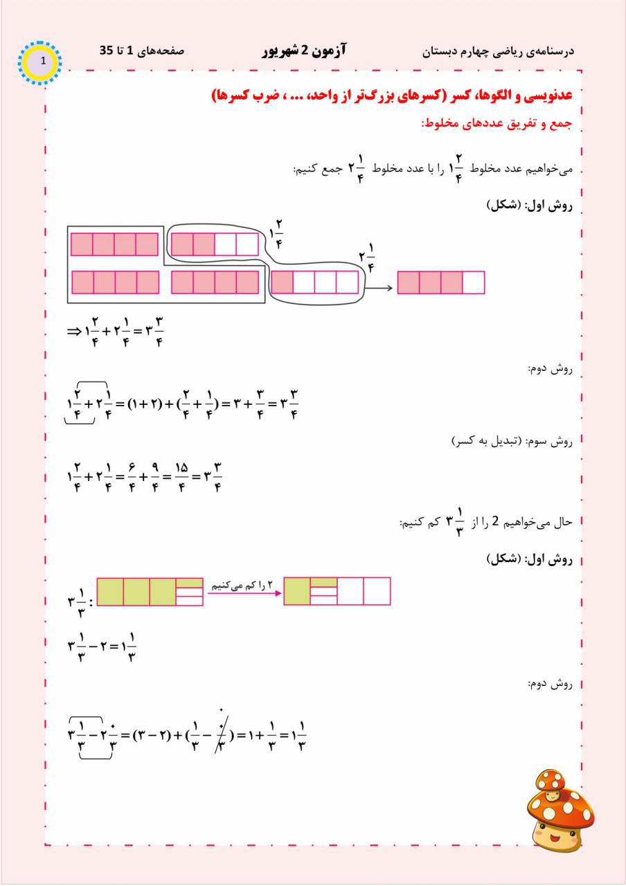 مباحث مربوط به صفحه 1 تا 35 کتاب ریاضی چهارم دبستان ، در زیر توضیح داده شده است. این فایل برای دانش آموزانی که میخواهند درس ریاضی چهارم دبستان را به صورت نگاه به آِنده بخوانند یا می خواهند آن را به صورت نگاه به گذشته بخوانند بسیار پر کاربرد و مفید است.