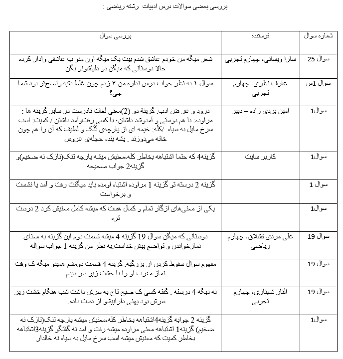 در این مطلب گزیده ای از کامنتهای ارسالی درس ادبیات کنکور ریاضی 97 است .