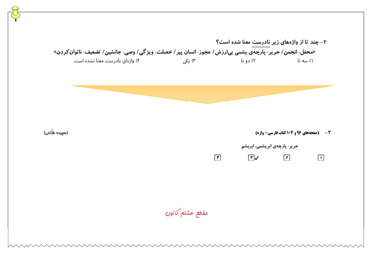نمونه یکی از سوالات را در عکس زیر مشاهده می کنید! فایل سوالات را می توانید از طریق فایل موجود در ضمیمه دانلود نمایید.
