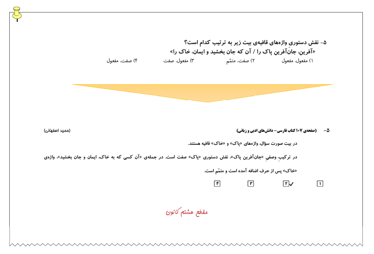 نمونه تست 4 آمادگی آزمون 22 تیر درس فارسی-مقطع هشتم