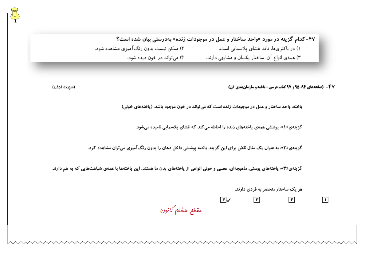 نمونه تست 4 آمادگی آزمون 22 تیر درس علوم-مقطع هشتم