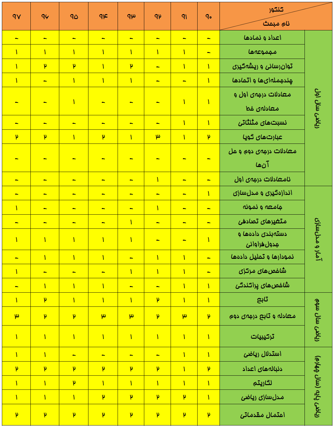 بودجهبندي رياضي در كنكور سراسري انساني سالهاي 90 تا 97