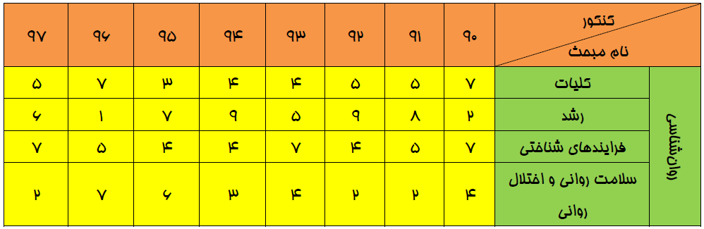 بودجهبندي روانشناسي در كنكور سراسري انساني سالهاي 90 تا 97
