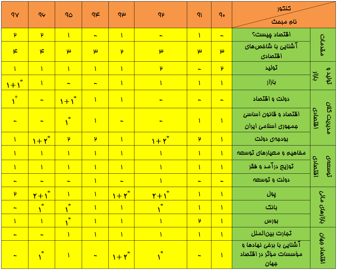 بودجهبندي اقتصاد در كنكور سراسري انساني سالهاي 90 تا 97