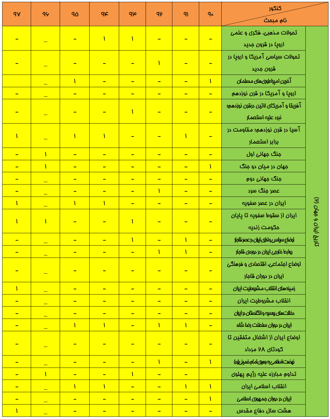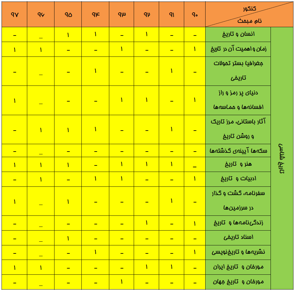 بودجهبندي تاريخ در كنكور سراسري انساني سالهاي 90 تا 97