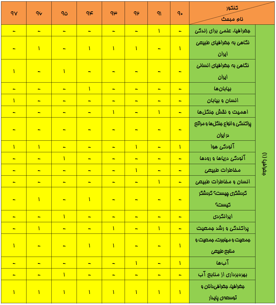 بودجهبندي جغرافيا در كنكور سراسري انساني سالهاي 90 تا 97