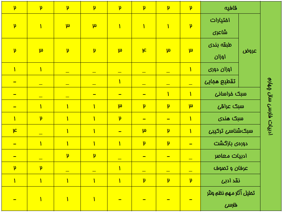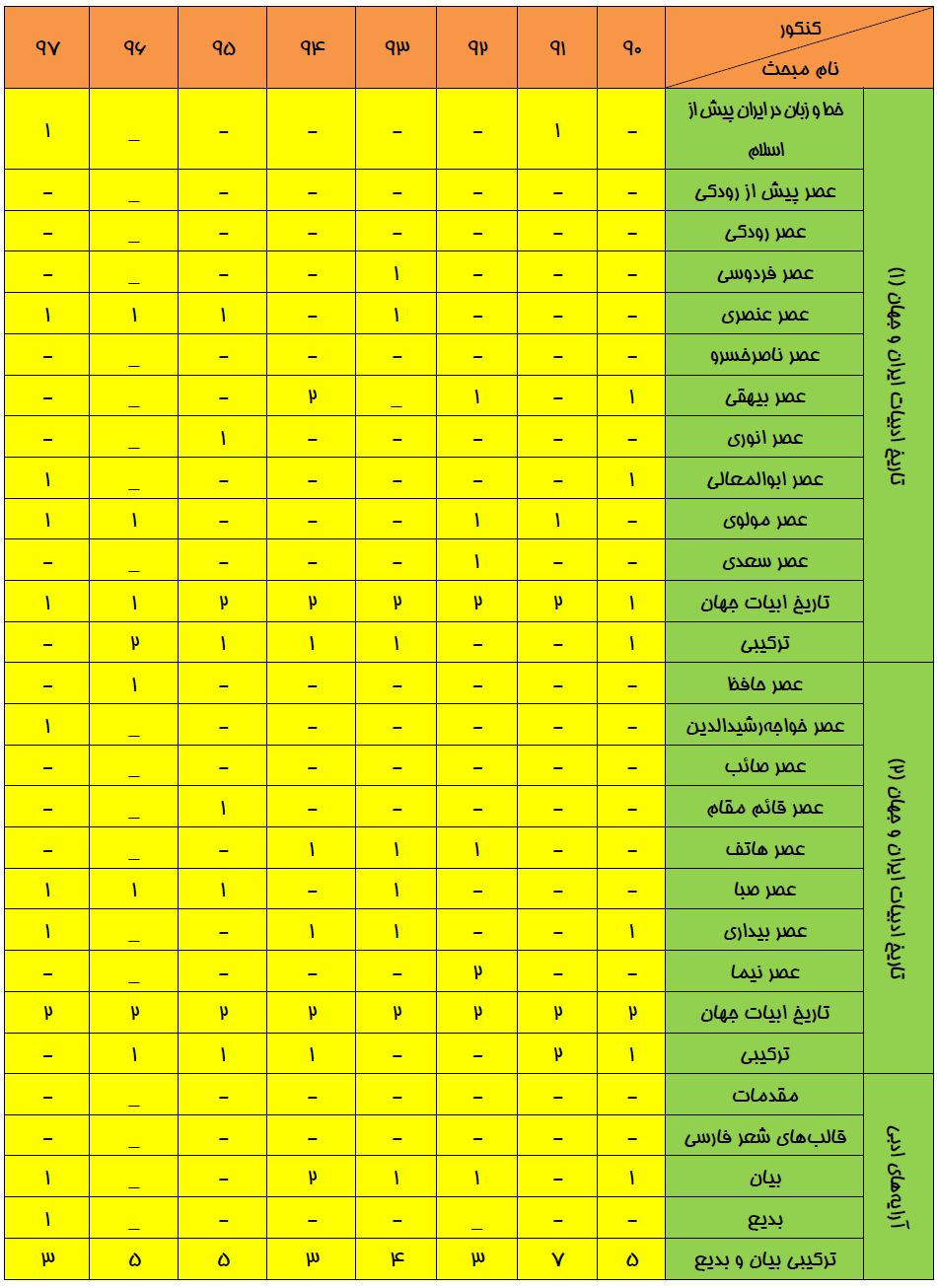 بودجهبندي ادبيات اختصاصي در كنكور سراسري انساني سالهاي 90 تا 97