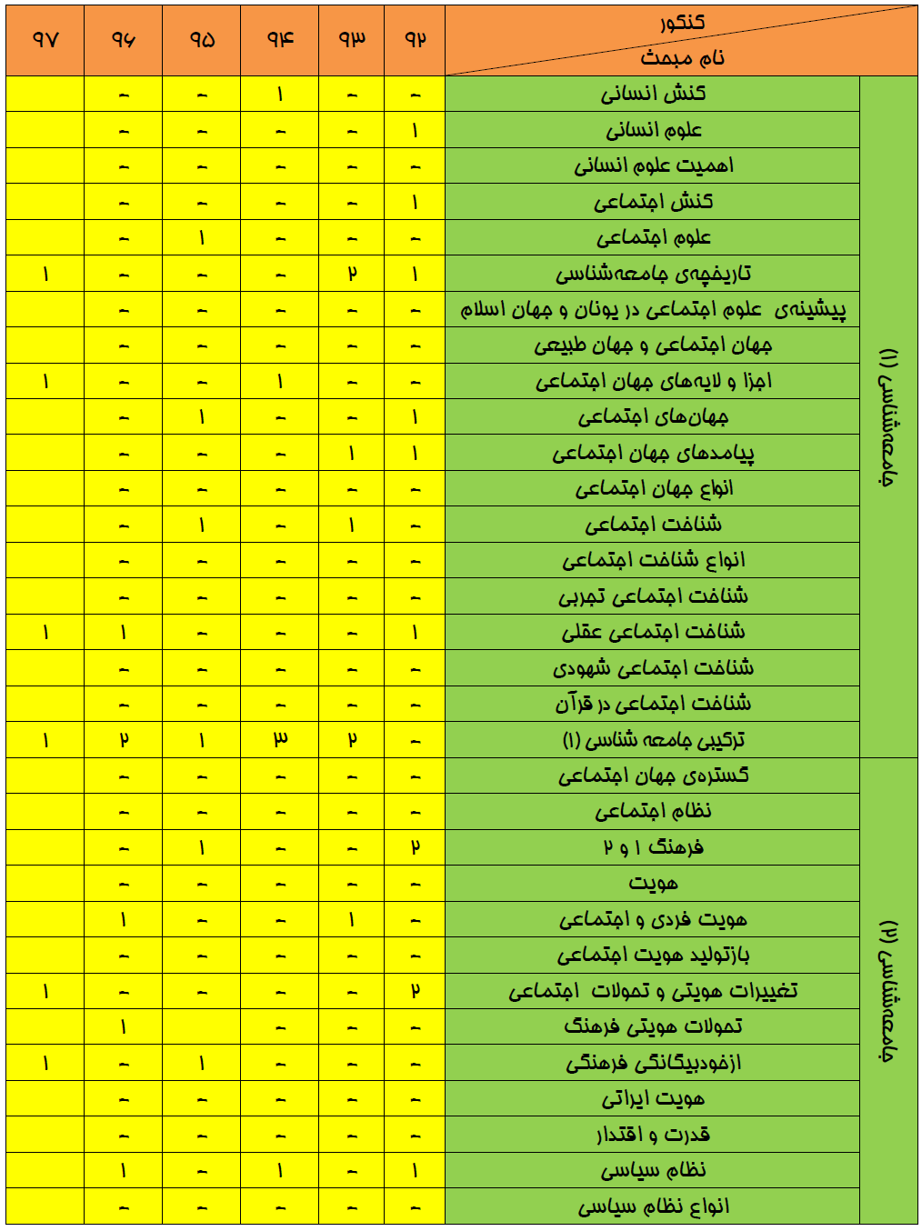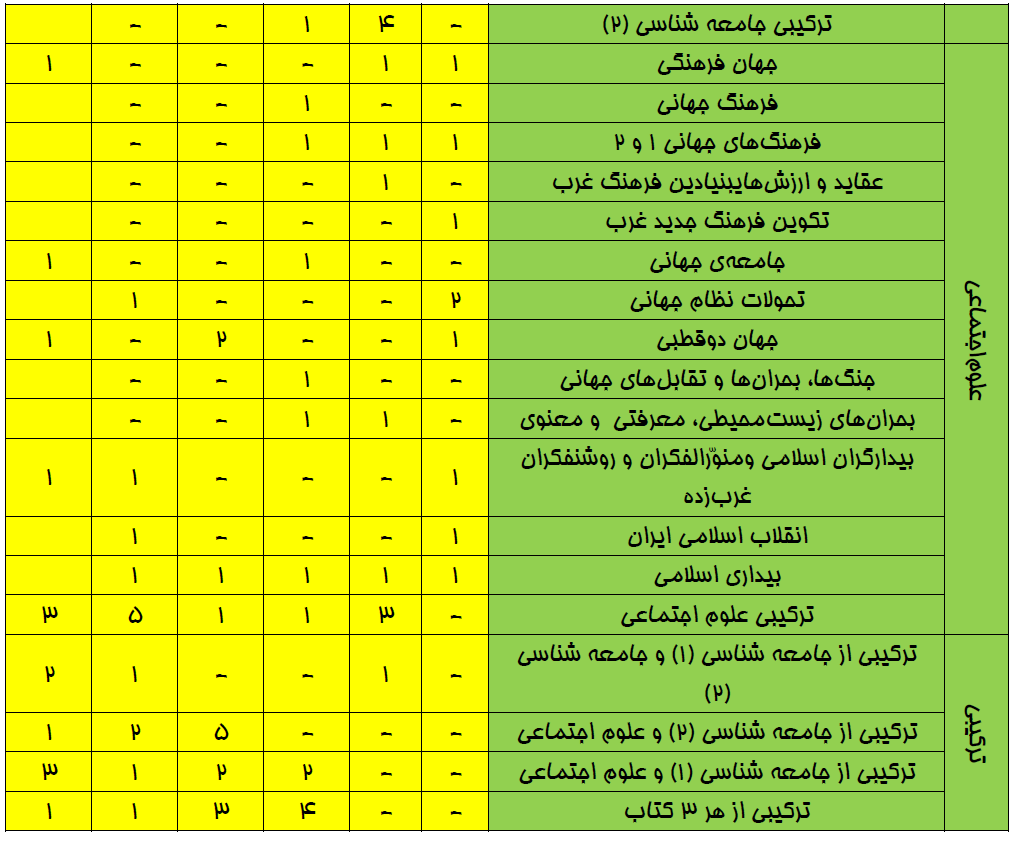 بودجهبندي علوماجتماعي در كنكور سراسري انساني سالهاي 92 تا 97