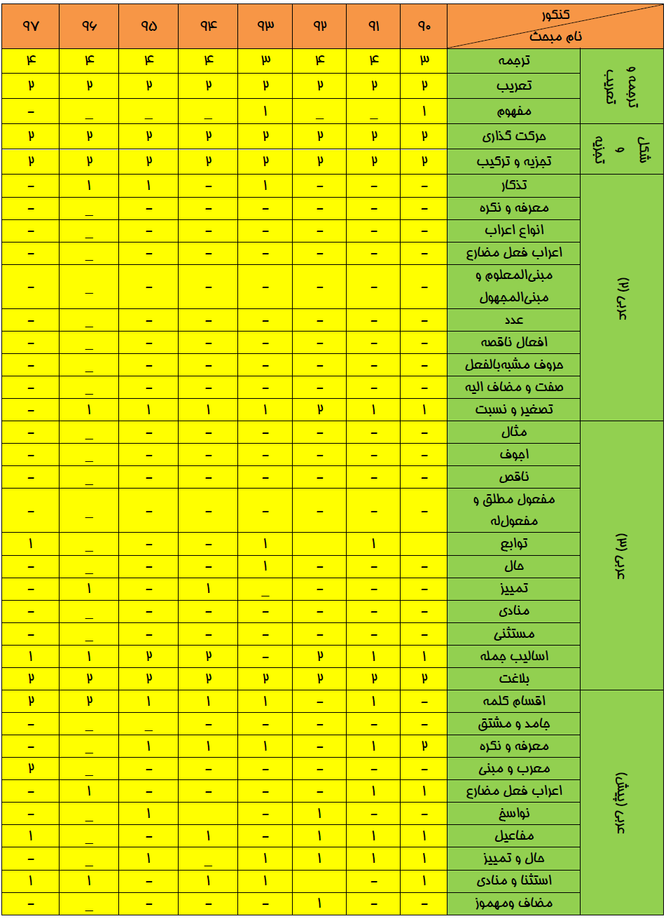 بودجهبندي عربي اختصاصي در كنكور سراسري انساني سالهاي 90 تا 97