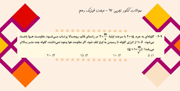 یازدهمی ها!فایل زیر سوالات کنکور تجربی 97 از کتاب فیزیک دهم است که شما همین الان قادر به پاسخ دادن به آن هستید! نمونه یکی از سوالات را در عکس زیر مشاهده می کنید! فایل سوالات را می توانید از طریق فایل موجود در ضمیمه دانلود نمایید.