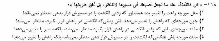 3) کُونوا کالقمر، یرتفع رؤوس النّاس لیشاهده في السّماء و لا تکُونوا مثل الدخان، یُرفع لیشاهده النّاس!