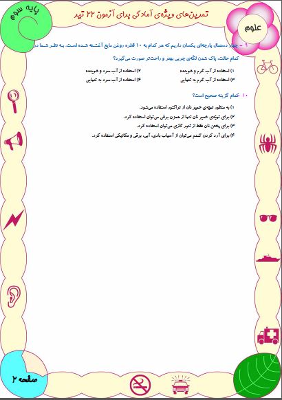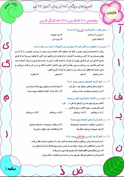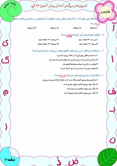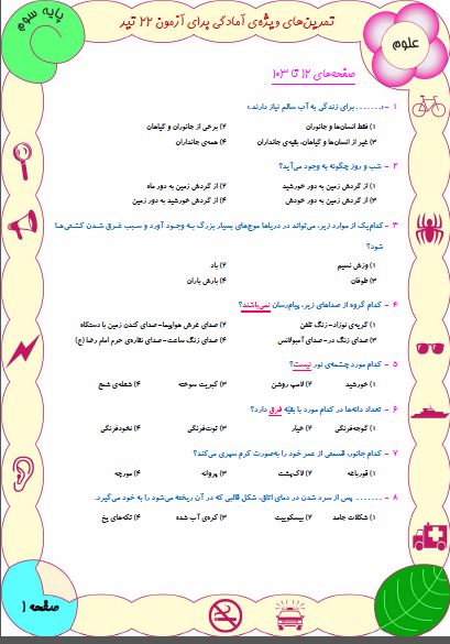 نمونه سوالات آمادگی آزمون 22 تیر سوم دبستان(نگاه به گذشته)