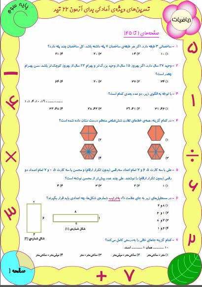 حاوی 10 سوال ریاضی،10 سوال علوم و 10 سوال فارسی و پاسخ تشریحی که پاسخ در مطلب بعدی ارسال میشود.