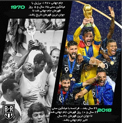 46 سال گذشت و تیم ملی فوتبال فرانسه دیشب قهرمان جام جهانی روسیه شد. آنها میانگین سنی 26 سال و 10 روز را دارند. هر چند این تیم رکورد میانگین سنی کم برزیل را نشکست اما در 46 سال اخیر به جوان ترین تیمی تبدیل شد که قهرمان جام جهانی می شد.