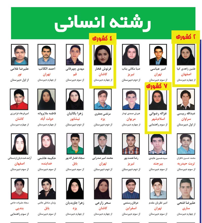 در خرداد ماه امسال دانش آموزان برتر کنکوری براساس نتایج آنها در آزمون های کانون در طی سال در ویژه نامه 1000 دانش آموز برتر معرفی شده اند.