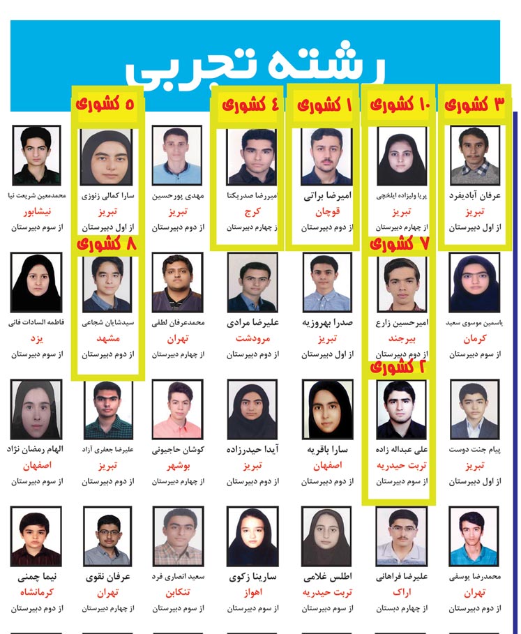 توجه : نتایج رتبه های زیر 10 مناطق و سهمیه ها ، پس از اعلام نتایج در این ویژه نامه مشخص می شود.