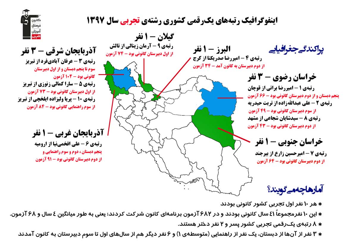 اینفوگرافیک رتبههای یکرقمی کشوری رشتهی تجربی سال 1397