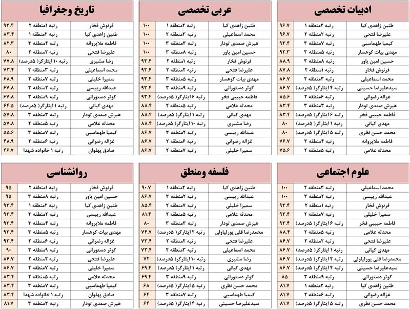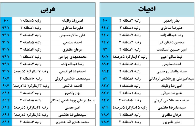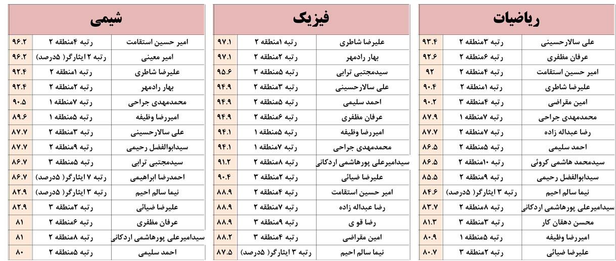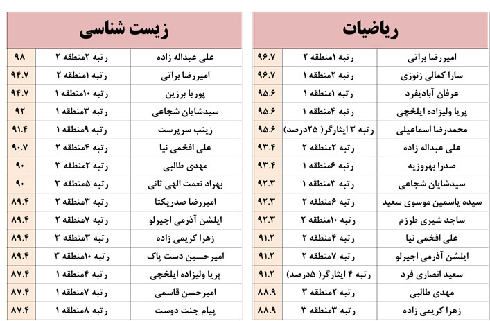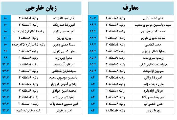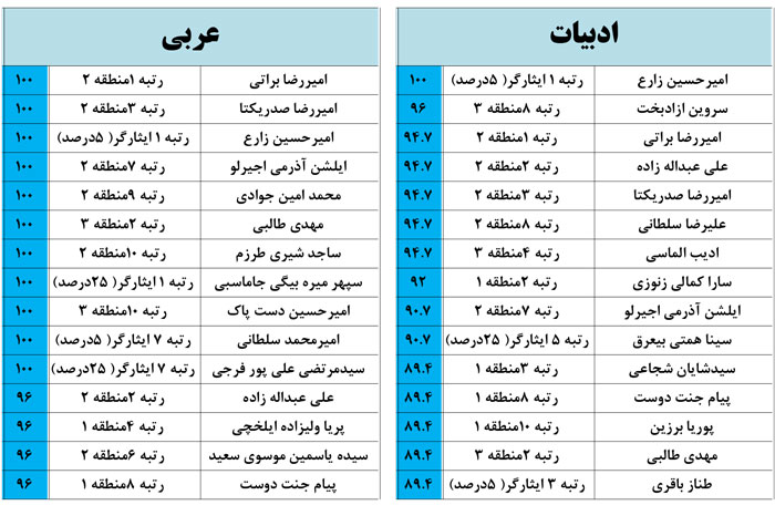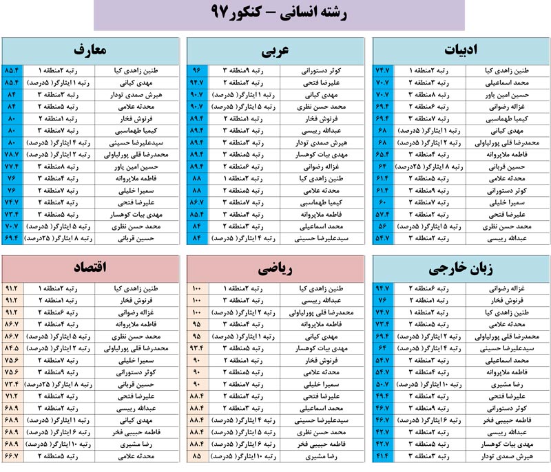 بالاترین درصد تک رقمی های کنکور 97 (تجربی-ریاضی -انسانی) در درس های مختلف را که در کارنامه کنکور آن ها درج شده است ، را در ادامه مشاهده کنید...