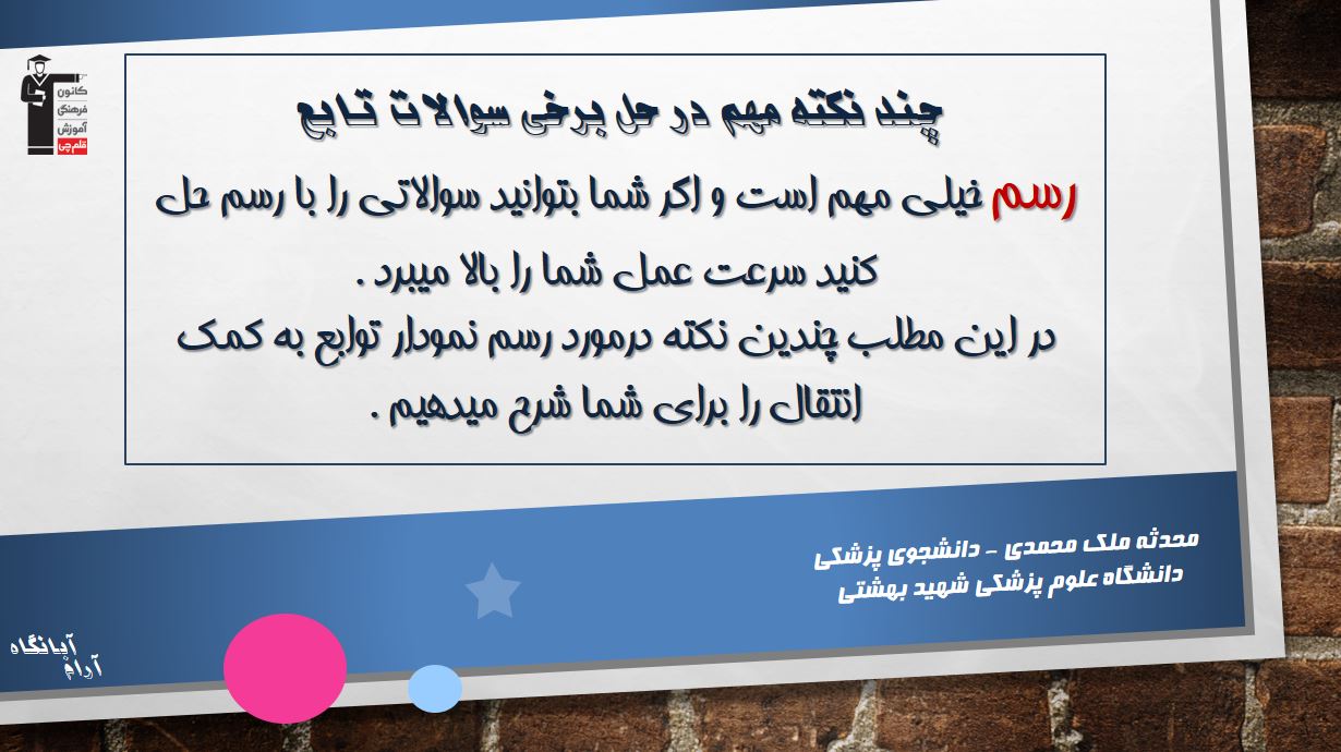 از بین کامنت های ارسالی شما تو سایت کانون ، چند نکته مهم در مورد رسم نمودار توابع به کمک انتقالکه توسط خانم محدثه ملک محمدى (دانشجوی پزشکی-دانشگاه علوم پزشکی شهید بهشتی) مطرح شده است رو واستون آماده کردیم . امیدواریم واستون مفید واقع شود .