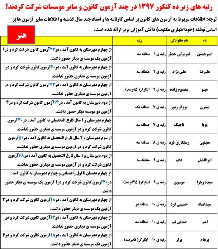 رتبه های برتر هنر از 80 تا 1404