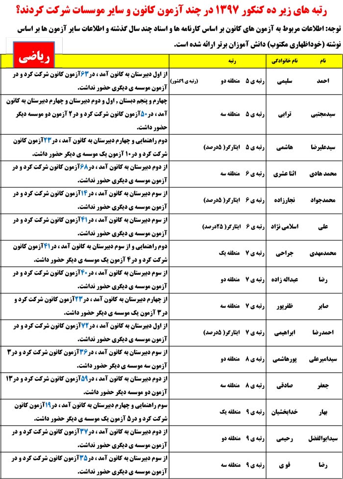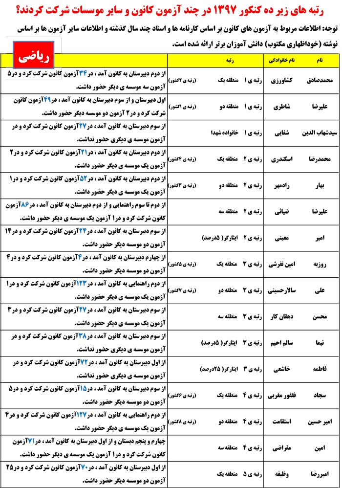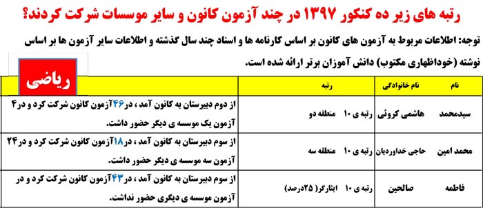 با چه رتبه ای در چه رشته ای قبول شدند ؟(ریاضی)