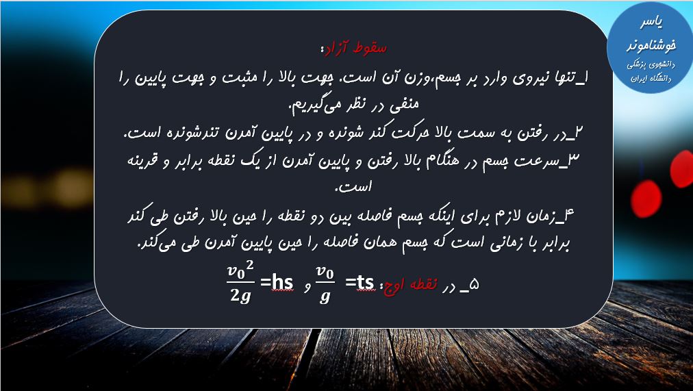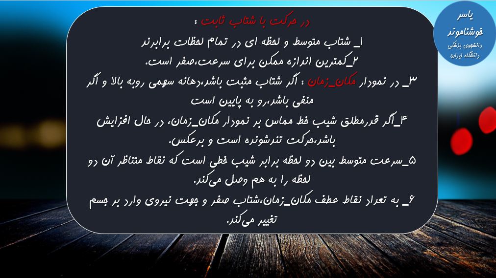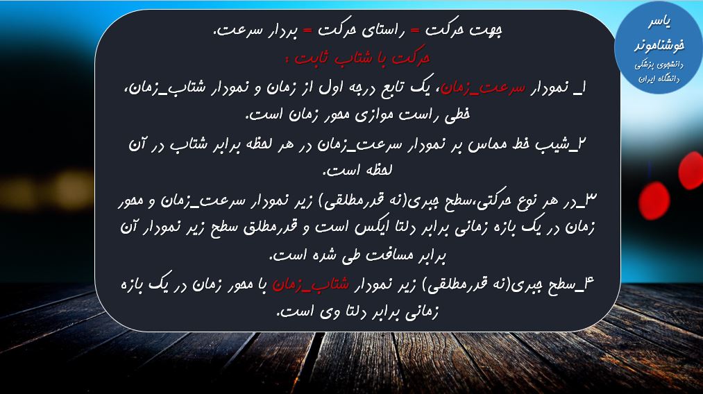 چند نکته از فیزیک حرکت شناسی1 (آزمون 16 شهریور)