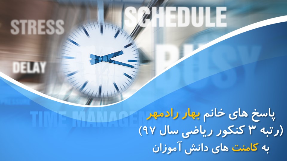 در این مطلب پاسخ های بهار رادمهر (رتبه 3 ریاضی 97) را که در طول یک سال اخیر به کامنت های مشاوره ای دانش آموزان در سایت کانون داده اند را برای شما آماده کرده ایم.