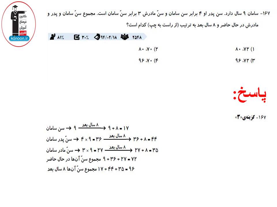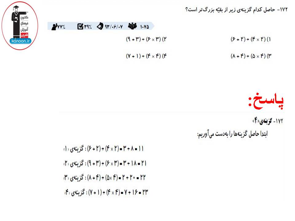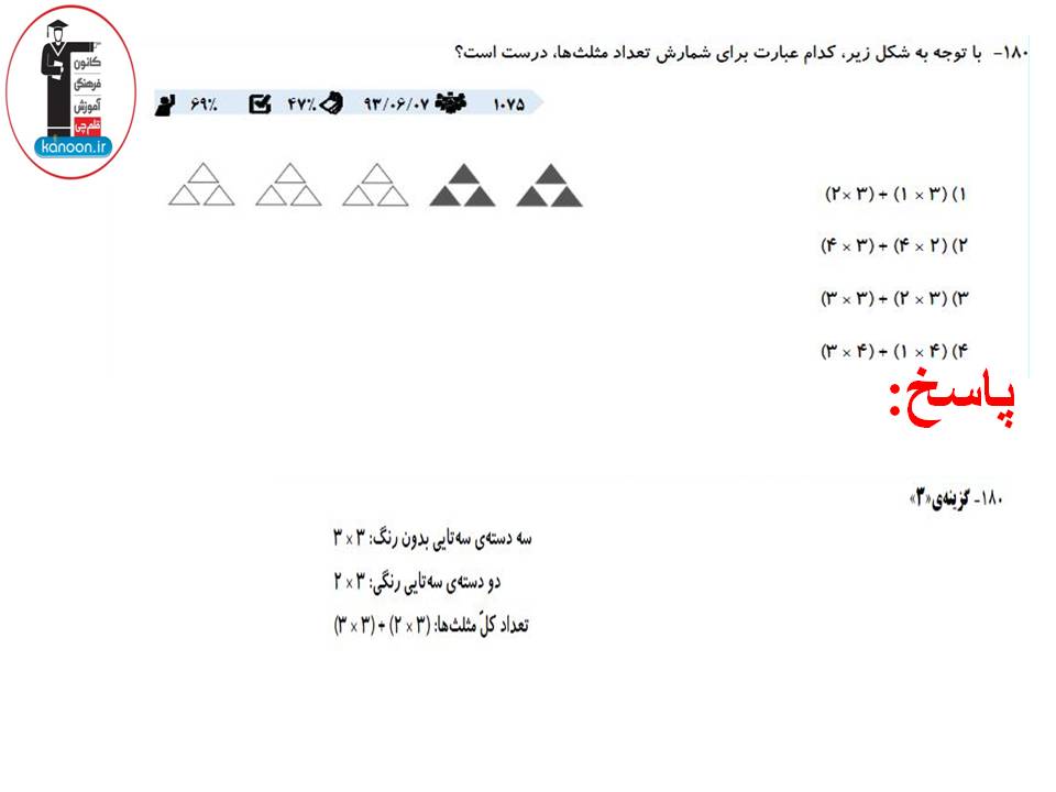 عکس هایی که در ادامه قرار گرفته است،نمونه سوالات تستی از فصل ضرب و تقسیم ریاضی سوم دبستان می باشد که توسط فاطمه احدزاده دانشجوی رشته ی مهندسی پلیمر دانشگاه تهران از کتاب سه سطحی کانون برای شما انتخاب شده است.سوالات شناسنامه دار این کتاب گلچینی از سوالات آزمون های کانون می باشد.