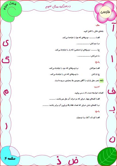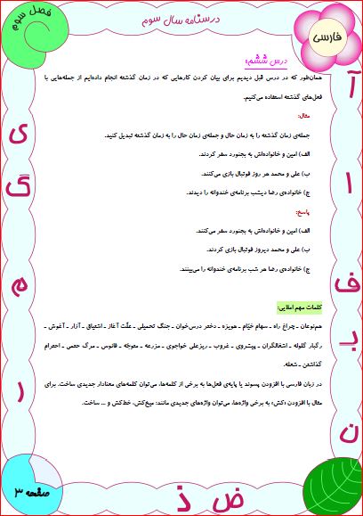 درسنامهی درس ششم فارسی سوم دبستان(فداکاران)