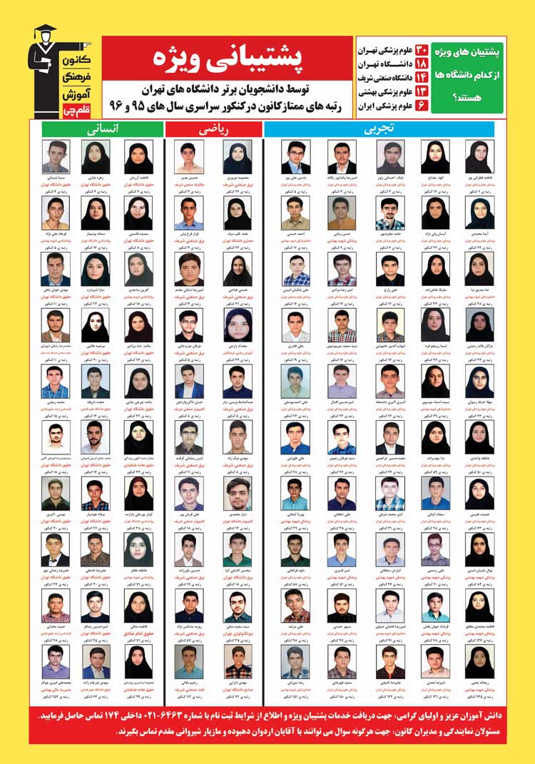 پشتیبان های ویژه رتبه های برتر کنکور امسال و سال های گذشته و دانشجویان رشته های برتر دانشگاه های تهران هستند.