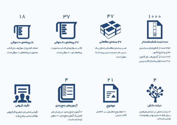 این هم تصویر آیکونهای پشت جلد کتاب که اطلاعات محتوا را دریک نگاه بیان مینماید.