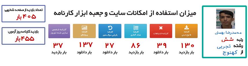 همچنین محمدرضا ، علاوه بر چگونگی استفاده از سایت کانون، در ارتباط با تلاش در دوهفته ی آزمون و غیبت نکردن در روز آزمون نیز صحبت می کند.