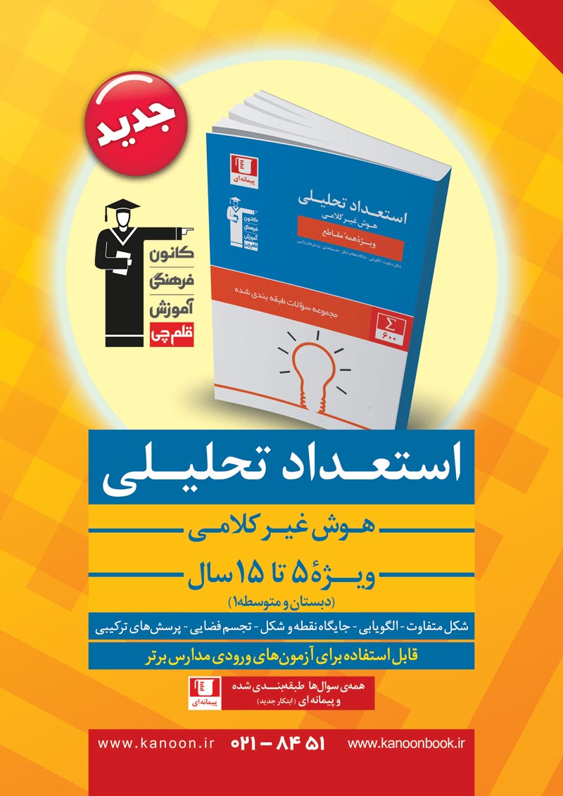 تلاش کردهایم پرسشهای این کتاب «جامع و متوازن» باشد، به این معنا که در این مجموعه از همهی مباحث به تعداد کافی، نه زیاد و نه کم، سؤال مطرح شود. چهار مبحث کلی که میتوان پرسشهای این چنین را در آن گنجاند، عبارت است از «یافتن شکل ناهماهنگ»، «الگویابی»، «جایگاه نقطه و شکل» و «تجسّم فضایی». همچنین جدا از این چهار مبحث، پرسشهای دیگری نیز وجود دارد که به دلیل گستردگی و جنبهی آموزشی آنها، در کتاب حاضر فصلی جداگانه به آن اختصاص داده شده است.