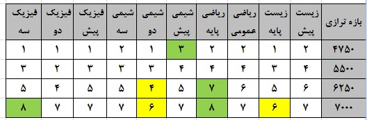 شایان ذکر است که رنگ دهی بر اساس میانگین ده دهی کنکور سه سال اخیر صورت گرفته است.
