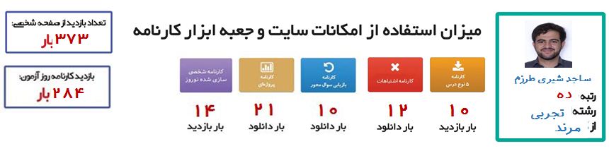 صفحه شخصی : من در صفحه شخصی از کارنامه های مختلفی استفاده می کردم .از کارنامه ی اصلی روز آزمون و کارنامه ی اشتباهات استفاده می کردم .
