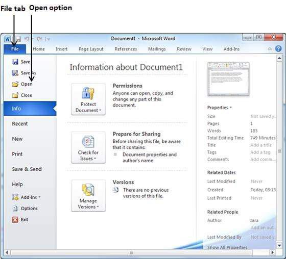 باز کردن یک مدرک ذخیره شده
