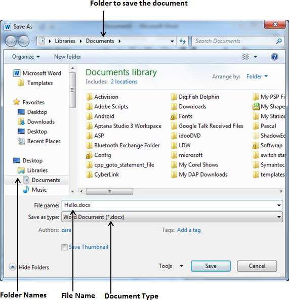 اگر مدرک شما جدید است و قبلا ذخیره نشده، با انجام هر یک از سه روش بالا کادر محاورهای برایتان باز خواهد شد و شما باید پوشه محل ذخیره، نام و قالب مدرک را همانطور که پیش از این گفته شد انتخاب کنید.