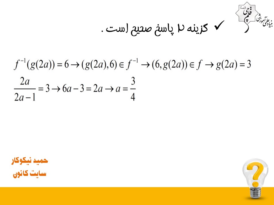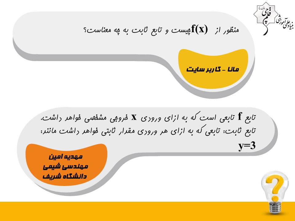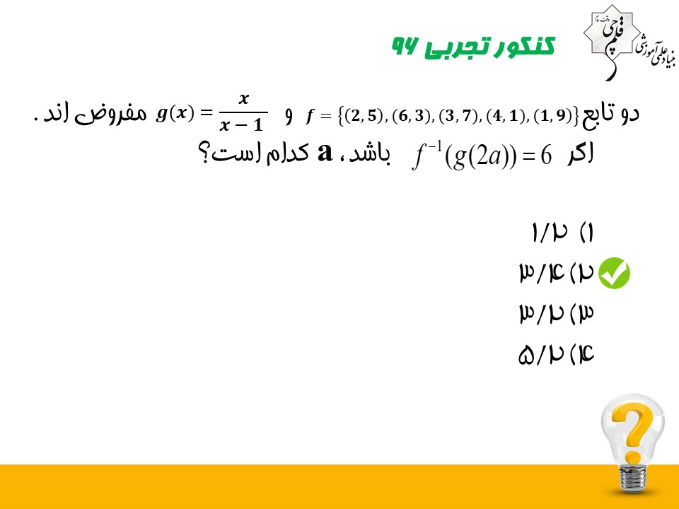 از میان کامنت های ارسالی شما عزیزان در سایت کانون ، چند پرسش مربوط به تابع که توسط رتبه های برتر پاسخ داده شده اند + یک سوال کنکور را برایتان آماده کرده ایم ، امیدواریم مفید باشد .