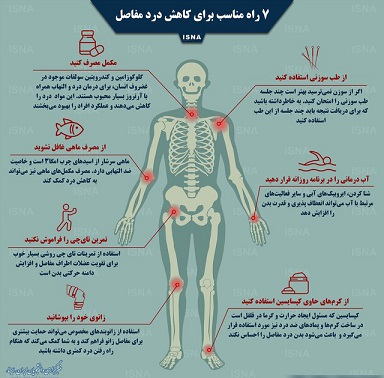 در این اینفوگرافی هفت راهکار ساده، طبیعی و خانگی برای کاهش درد مفاصل پیشنهاد شده است.